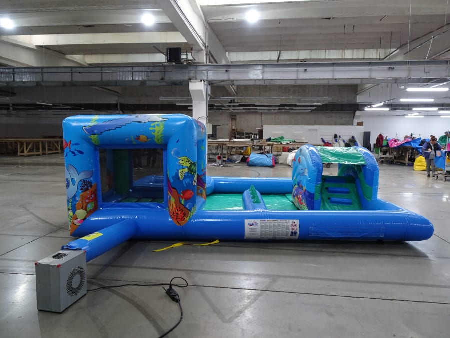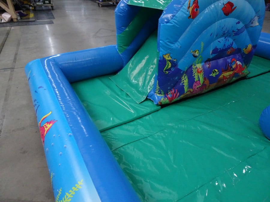 It comprises of a slide, a ball pool, an enclosed bouncing area and soft play. Includes an Interactive ball floating tube!!