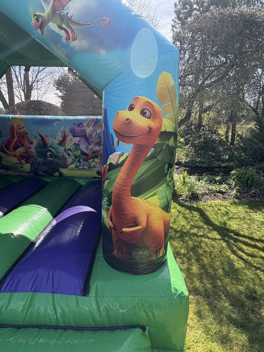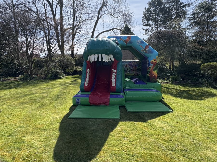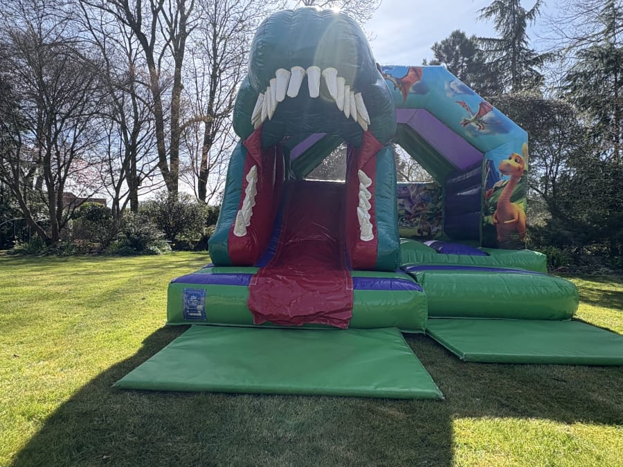 Our brand new 3D dinosaur bounce and slide added to our fleet for 2025.