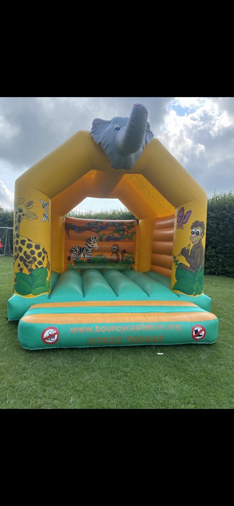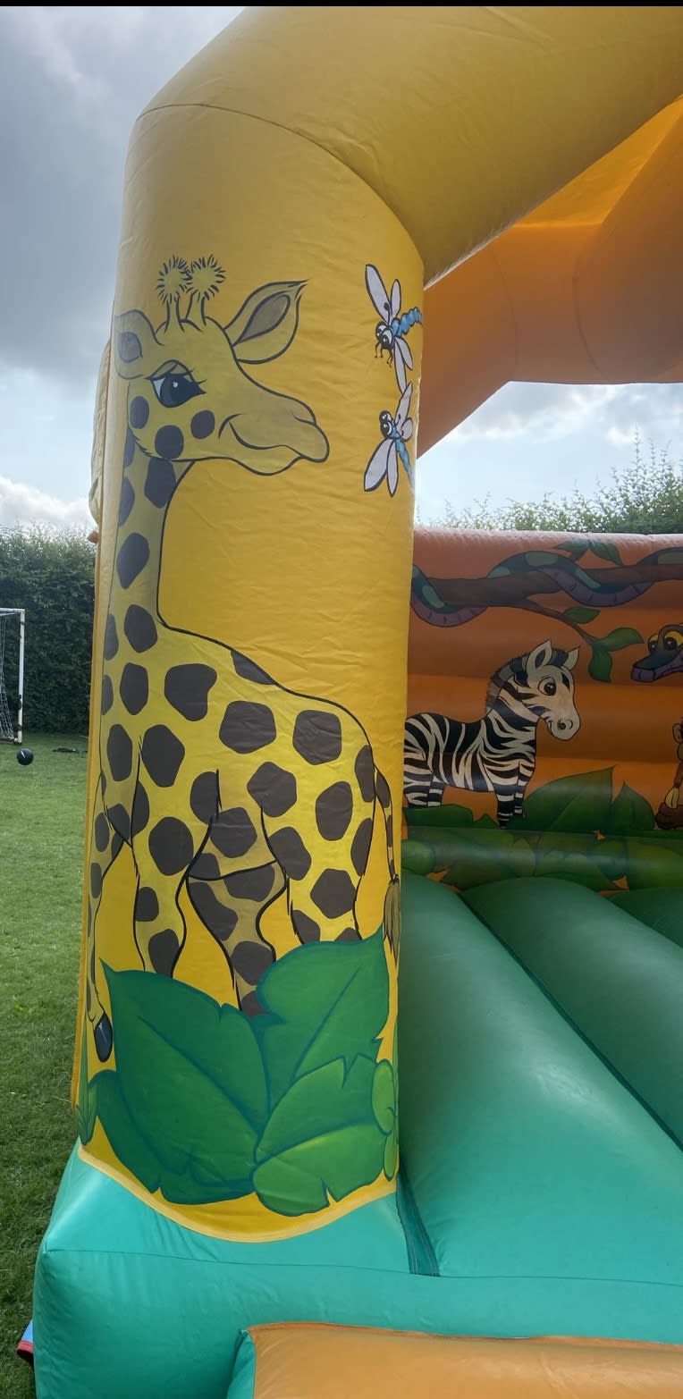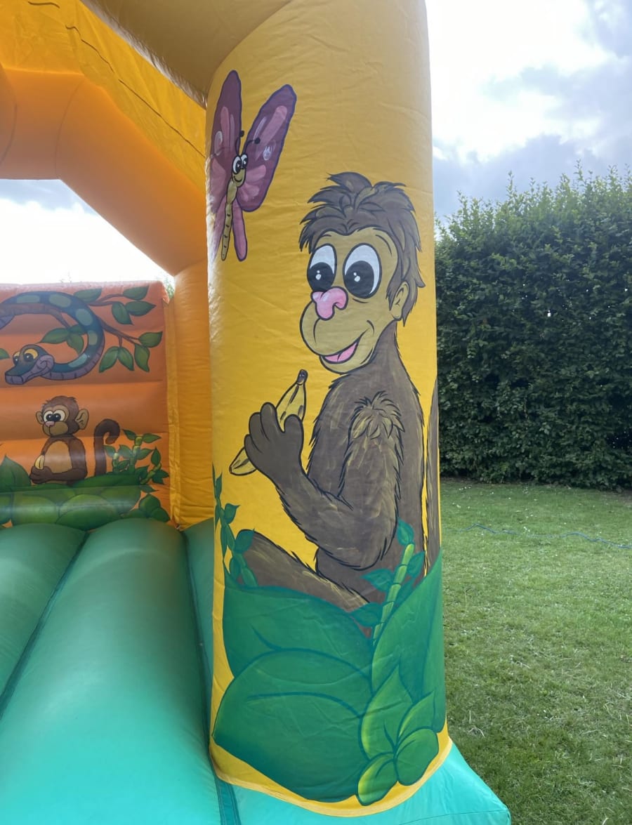 This bouncy castle is perfect for all children with painted jungle characters all over the front and back wall.