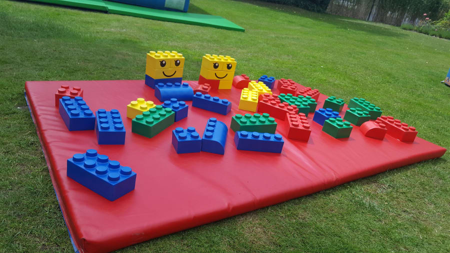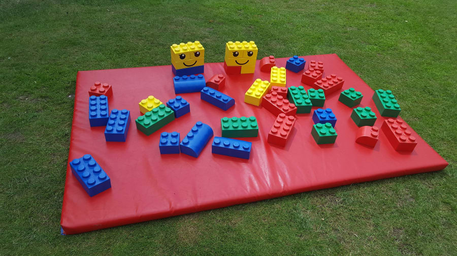 Large Lego pieces in primary coloured blocks for children to explore and build creative structures with.